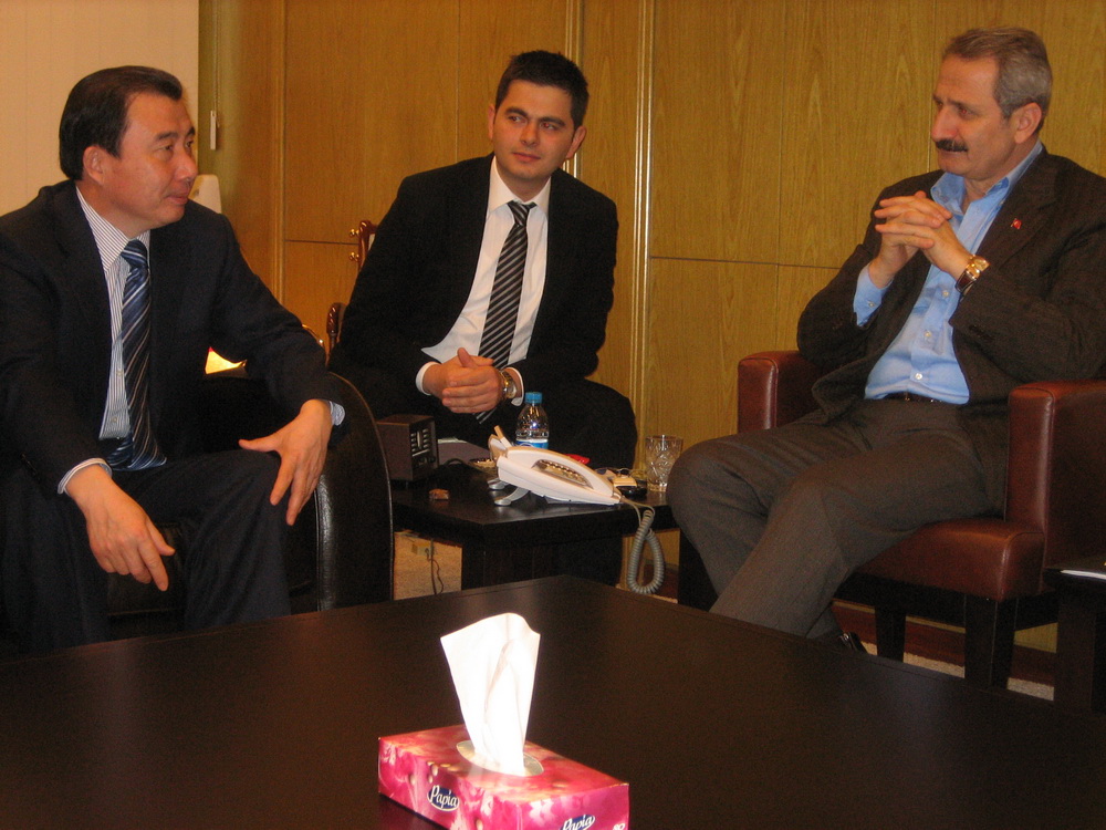 土耳其外貿部部長Zafer先生對劉志江總經理及張奇董事長一行的來訪表示歡迎,并對中國的飛速發展以及中國企業在國際市場上產生的積極影響表示肯定。他還著重介紹了國外企業在土耳其進行相關的投資業務的發展情況。他說,除了關稅上的優惠政策外,到2010年底之前,土耳其還將對投資風能、太陽能、新能源等行業的企業提供更多便利和優惠。他希望中材要抓住機遇,在誠摯、友好、共贏的基礎上,除余熱發電以外,在風能、復合材料、玻璃纖維等領域不斷擴大合作,為進一步推進中土經貿合作作出貢獻。