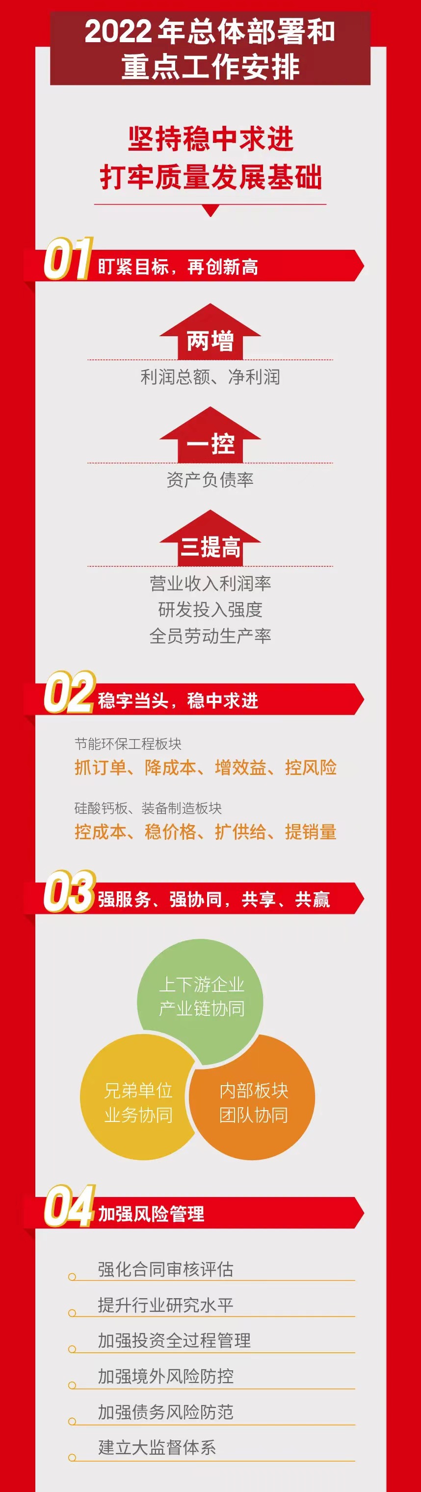 2月14日,中材節(jié)能股份有限公司召開2022年度工作會(huì)議,工作會(huì)議上總結(jié)回顧了公司2021年的工作情況,研究部署了2022年重點(diǎn)工作,干貨滿滿,下面讓我們通過(guò)一圖讀懂來(lái)了解工作會(huì)議的主要內(nèi)容吧!