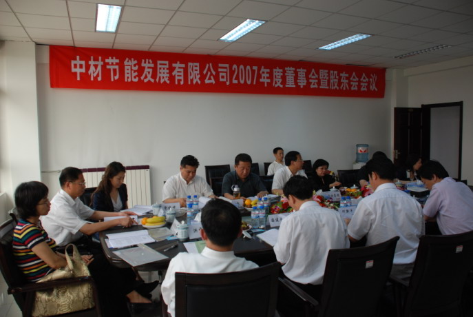 6月12日,中材節能發展有限公司召開年2007度董事會暨股東會會議,會議由董事長張奇主持,公司全體董事、股東及部分高管人員出席會議。經過全體股東、董事的認真審議,董事會審議并通過了全部14項議案,股東會審議通過了全部12項議案,會議取得了圓滿成功。