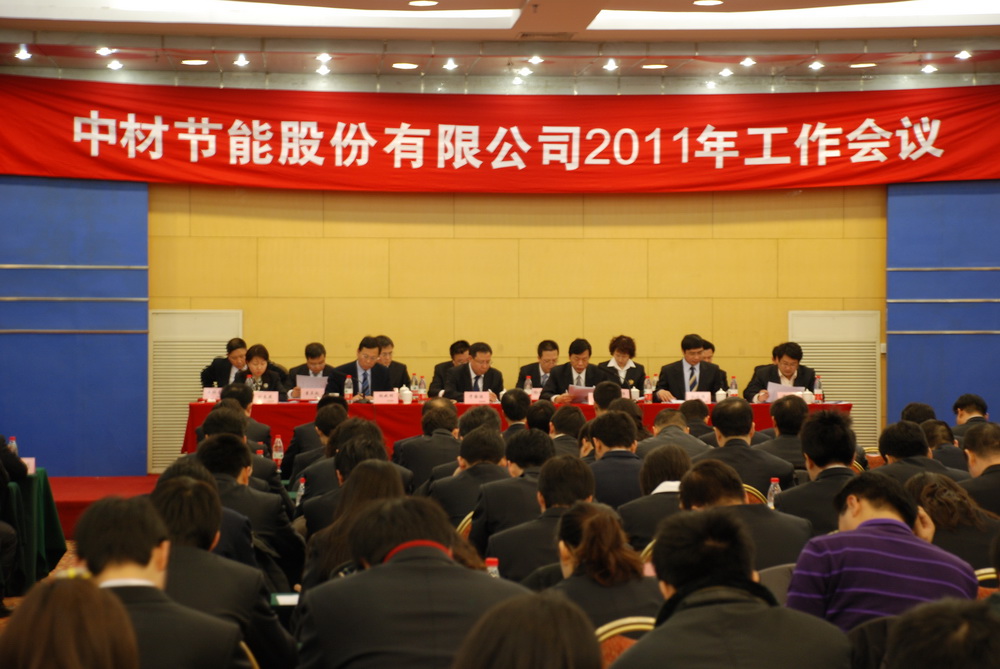 2011年1月23日,中材節(jié)能股份有限公司年度工作會(huì)議在北京九華山莊隆重召開。中材集團(tuán)黨委常委、副總經(jīng)理于國(guó)波,公司董事長(zhǎng)張奇、總裁胡也明、黨委書記劉習(xí)德及其他班子成員出席會(huì)議。