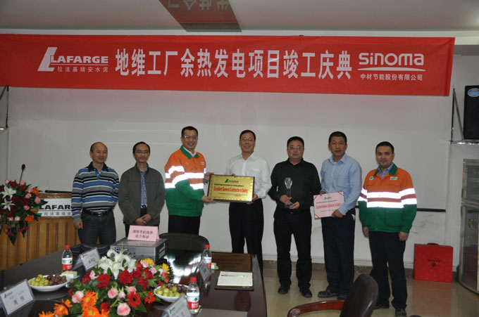 9月20日,中材節能股份有限公司在總承包的重慶拉法基地維EPC余熱發電項目竣工典禮上,榮獲拉法基安全管理優秀總包商獎。重慶BU總裁熊光煒、工業總監彭立、安全總監陸斌代表拉法基集團向中材節能頒發了獎牌、獎杯和證書。中材節能總裁胡也明、副總裁魏文華、項目經理劉霄、設計經理曲賀等參加了頒獎儀式。