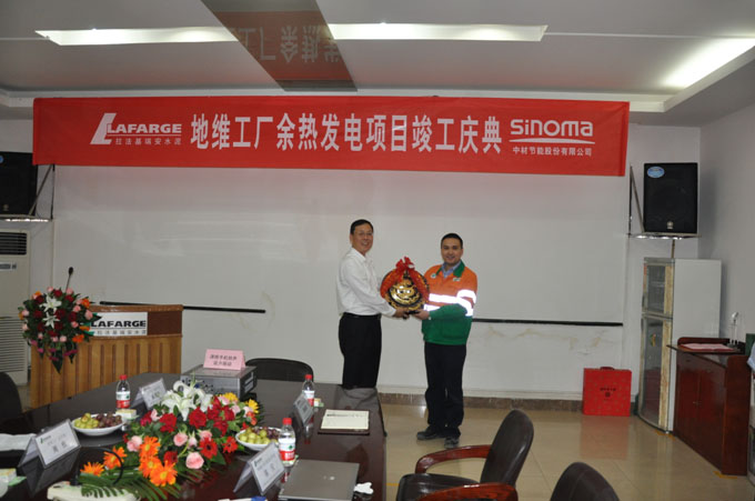 拉法基重慶BU總裁熊光煒先生代表拉法基集團發表了熱情洋溢的講話,他高度贊揚了中材節能在地維項目中所展現的綜合實力和項目管控能力。他指出地維項目是拉法基中國近幾年唯一一個項目工期提前,項目成本可控,項目實現安全、零事故的項目。對此,他代表拉法基對中材節能表示誠摯的感謝。熊總堅信,通過地維項目的成功,拉法基與中材節能將會有更多機會和更廣泛區域的合作。