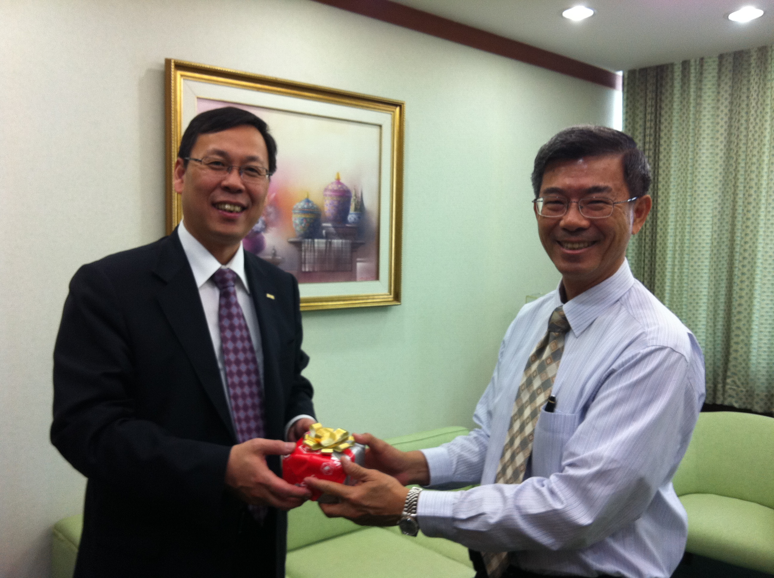 2012年4月24日,中材節(jié)能股份有限公司總裁胡也明一行到訪泰國(guó)SCG水泥集團(tuán)總部,SCG水泥集團(tuán)總裁Mr.Pramote先生、工程部部長(zhǎng)Mr.Somkiat先生 、工程部副部長(zhǎng)Mr.Sawai先生及余熱發(fā)電項(xiàng)目主管經(jīng)理 Mr.Surapon先生等相關(guān)管理人員參加了會(huì)見(jiàn)。