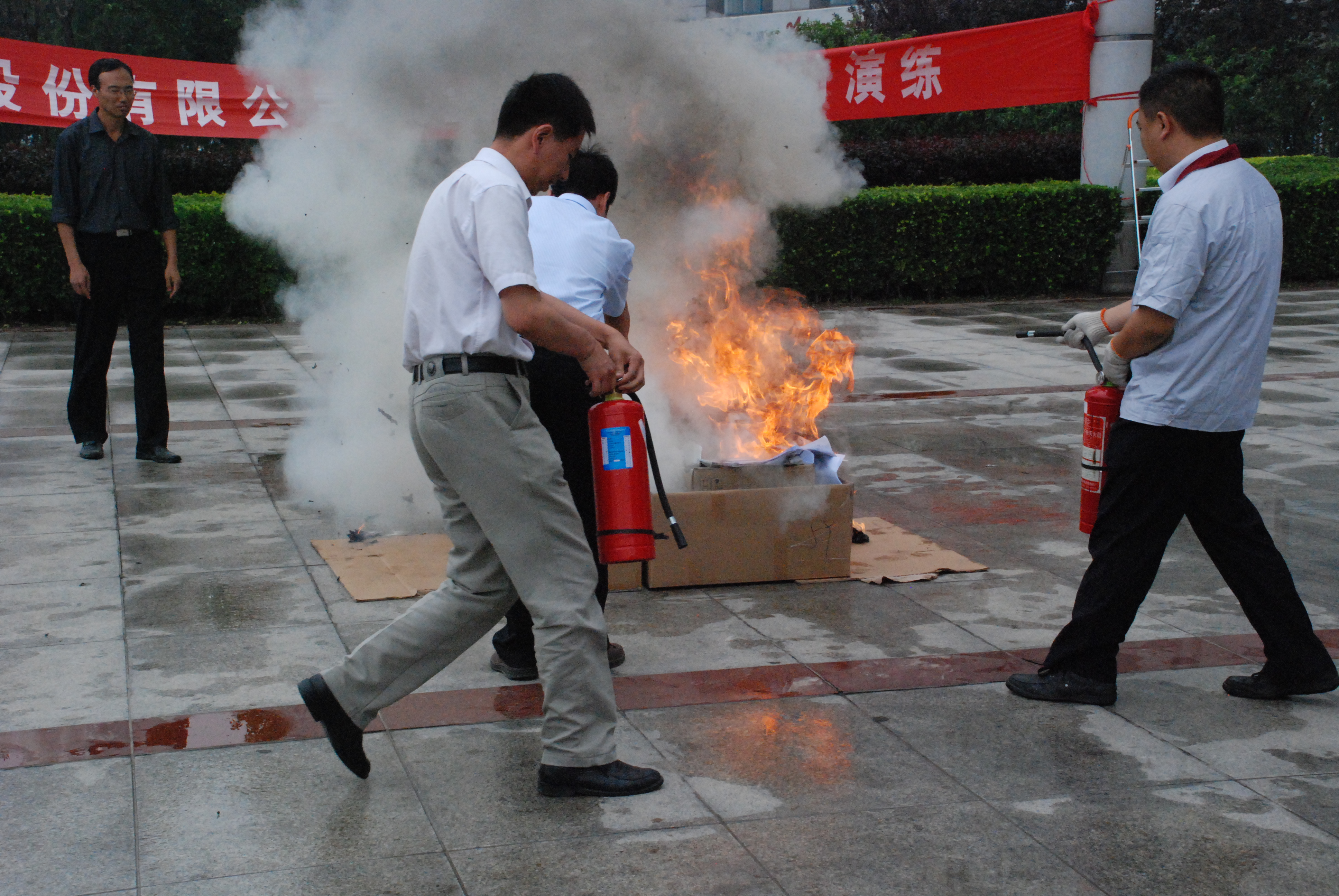 上午10點,消防演習開始,各樓層疏散人員立即組織本區域員工井然有序地按照規定路線進行緊張、快速的撤離,4分鐘內完成撤離工作。安全撤離完畢后,滅火組成員現場演示了滅火器操作程序和使用方法,并讓部分員工親自使用滅火器進行實地滅火。