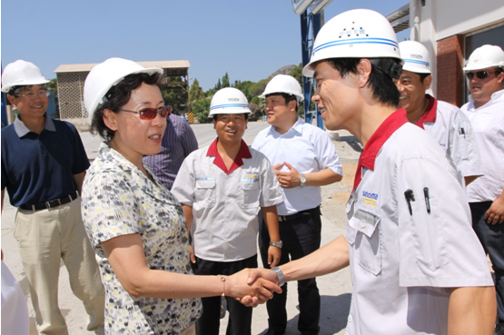 聽取匯報后,黃丹華代表國務(wù)院國資委對所有海外工作人員所做出的努力表示感謝,對中材集團的國際化戰(zhàn)略方針及經(jīng)營策略予以贊同,對項目部的管理水平表示認(rèn)可。她說,國內(nèi)外項目存在著很大不同,一定要重視國外項目,關(guān)心國外項目的職工,發(fā)揮黨員、干部的模范帶頭作用,把項目做好、做實。