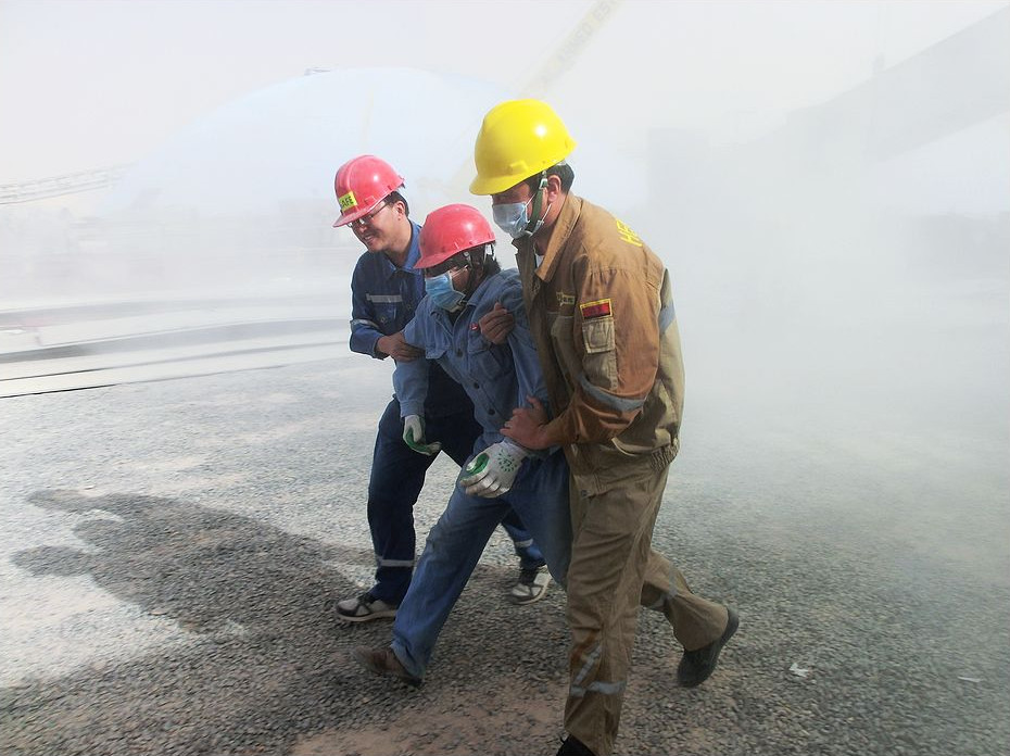 下午16:00,隨著應急救援總指揮---項目管理中心副總經理王品一聲令下,演練活動正式開始。江蘇恒遠安全員發現一帶頭罩恐怖嫌疑人偷偷靠近辦公室,將一黃色包裹藏匿在恒遠辦公室下邊,并進入加工場地將可燃物點燃,隨即報告項目經理。項目經理宣布啟動防恐應急預案,安全員指揮疏散、搶險、救護、保衛等職能組迅速投入戰斗。疏散組負責組織營地人員從辦公室及制作場地向安全區域疏散,到達集合點點名,將點名結果向項目經理匯報。搶險組負責組織人員擒獲恐怖嫌疑人,使用滅火器及時將火撲滅。救護組負責送受傷人員到廠區醫務室。保衛組搶救物資、控制損失,劃定事故警戒區,保護事故現場不遭破壞。經過大家的共同努力,嫌疑人被擒獲,火災撲滅,附近人員安全疏散。項目經理報告當地公安機關,請求處理危險背包及嫌疑人,并向總指揮報告事件處理情況。16點25分,總指揮宣布演練結束。整個演練歷時25分鐘,涉及人員60余人。動用6公斤滅火器2具,申請業主消防車一臺備用,急救車1臺(項目部商務車代替)。過程緊張有序,指揮有力,各部門職責明確、配合默契,全體人員認真投入、反應敏捷,圓滿完成了此次防恐應急預案演練的各項程序要求。