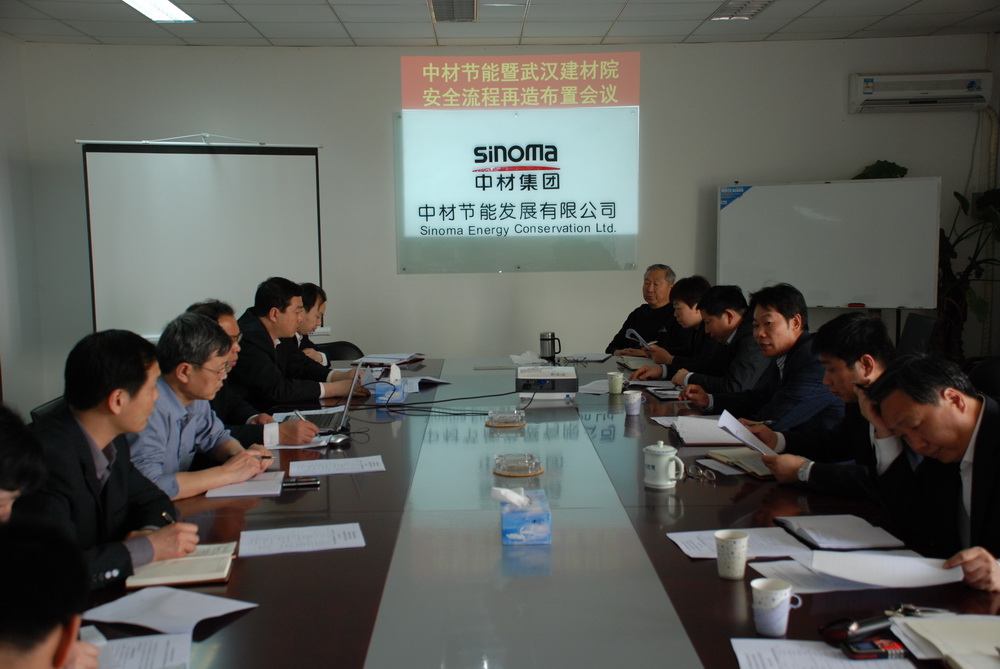 2009年4月8日至9日,中材節能發展有限公司暨武漢建材設計院安全管理流程再造布置會議在中材節能公司第一會議室召開。中材集團安全環保部蒲太安副部長出席會議。中材節能公司、武漢建材設計院領導及中材節能公司各部門負責人共20余人參加了會議。