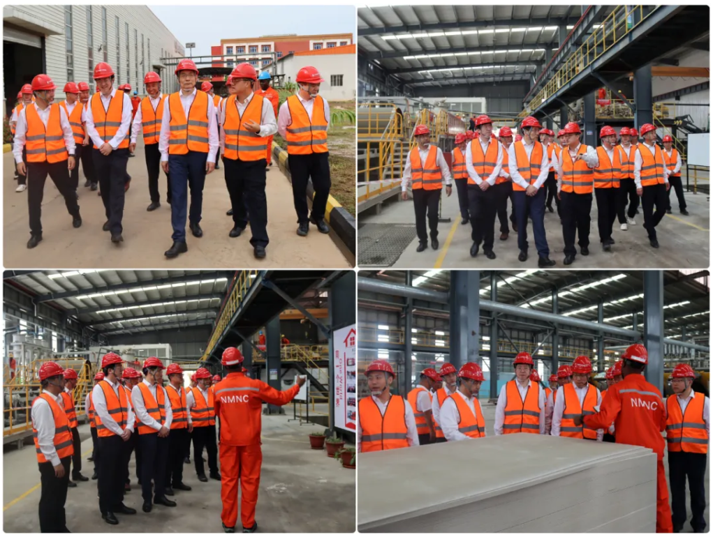 Zhou Yuxian and his delegation visited NEW MATERIAL NIGERIA COMPANY LTD office building, calcium silicate board production workshop, raw material warehouse, etc., and learned about CNBM Nigeria's corporate culture, production process and series of products. Mr. Zhang Hui, Chairman ofSinoma-EC(Nigeria), made a detailed report on the current production and operation, marketing, cost control, problems and future targets and measures.