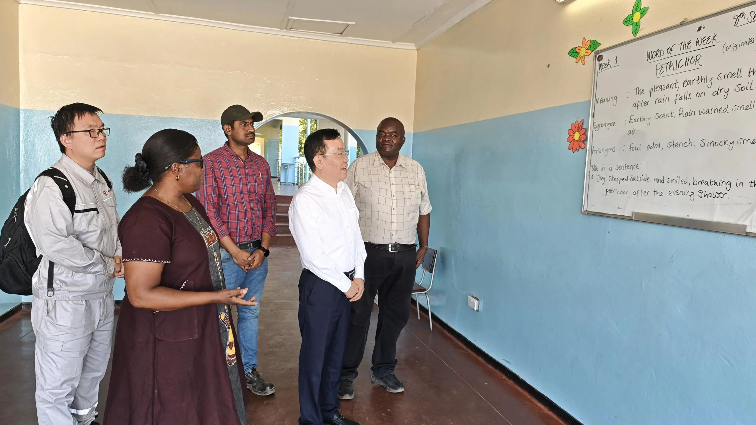 During the visit to Maamba Private Primary School, the school principal briefed Meng Qinglin on the school's construction, curriculum development, and other aspects. Meng Qinglin noted that China-Africa friendship has a long history, and Sinoma Energy Conservation Limited will consistently adhere to the "Three Principles" of win-win cooperation: contributing to the local economy, collaborating with local enterprises, and fostering friendly relations with local people. The company integrates its development deeply into Zambia's local economy and social development, demonstrating the responsibility of Chinese enterprises through concrete actions. He also expressed hope that students would gain a better understanding of China and Chinese culture through interactions with Chinese enterprises.
